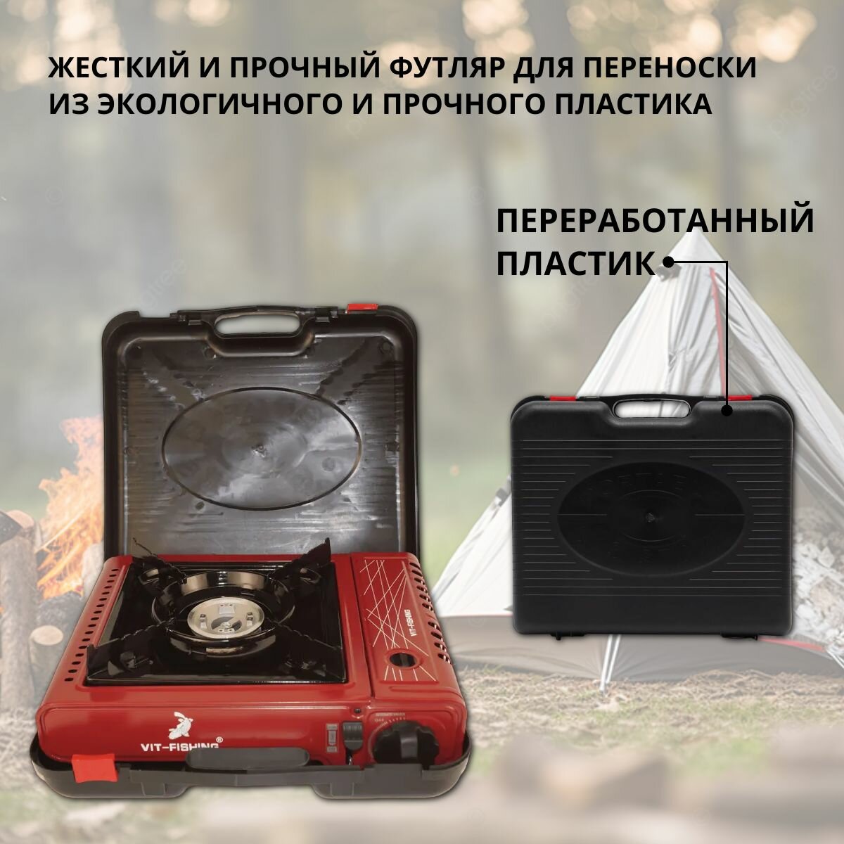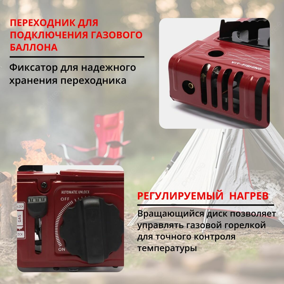 Плитка газовая туристическая красная черная/ Плитка газовая с переходником.
