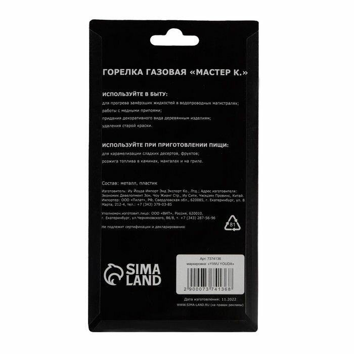 Газовая горелка на баллон Мастер К с пьезоподжигом интересное:
