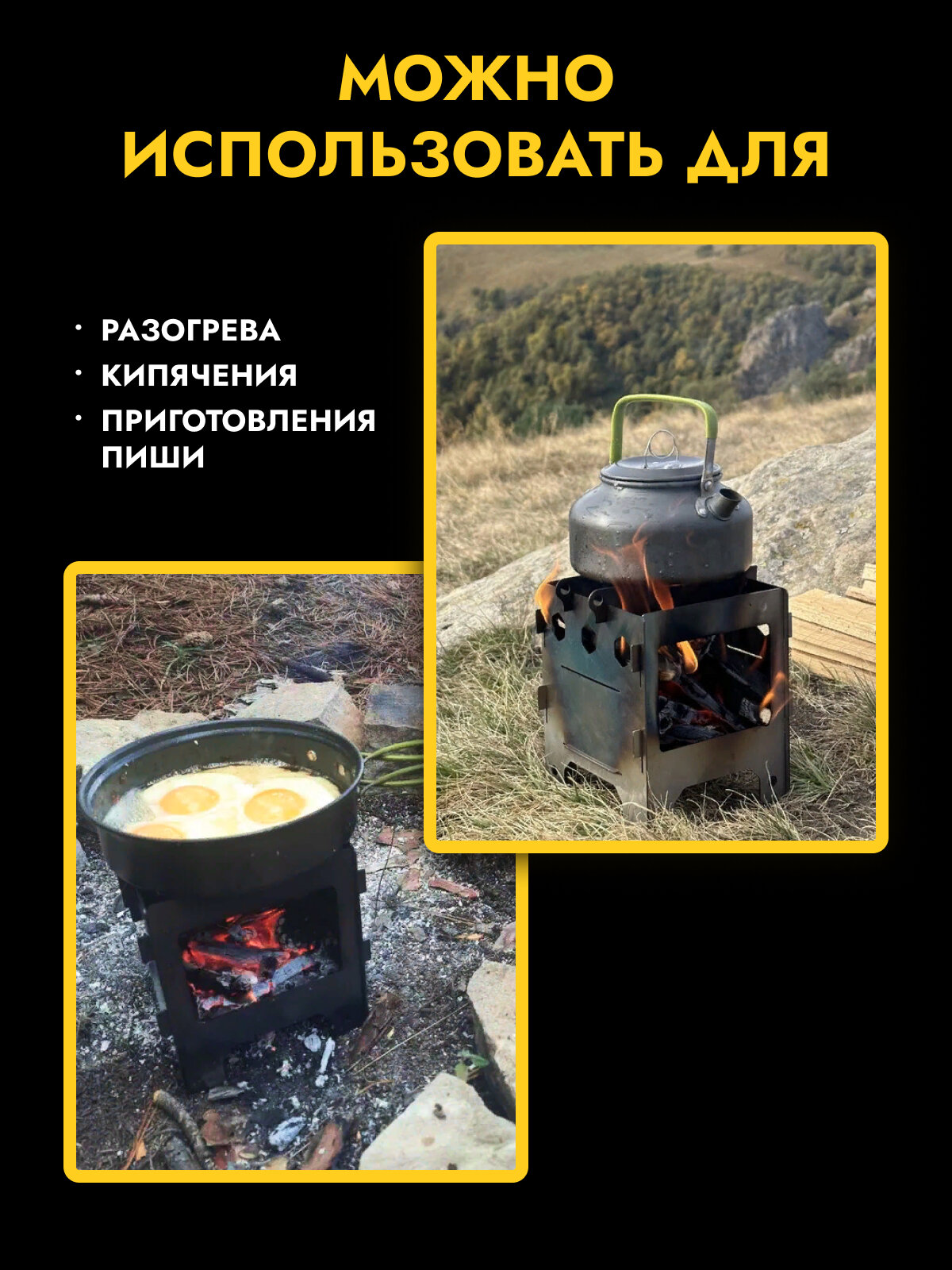 | Топливо | дрова / сухое горючее / щепа |