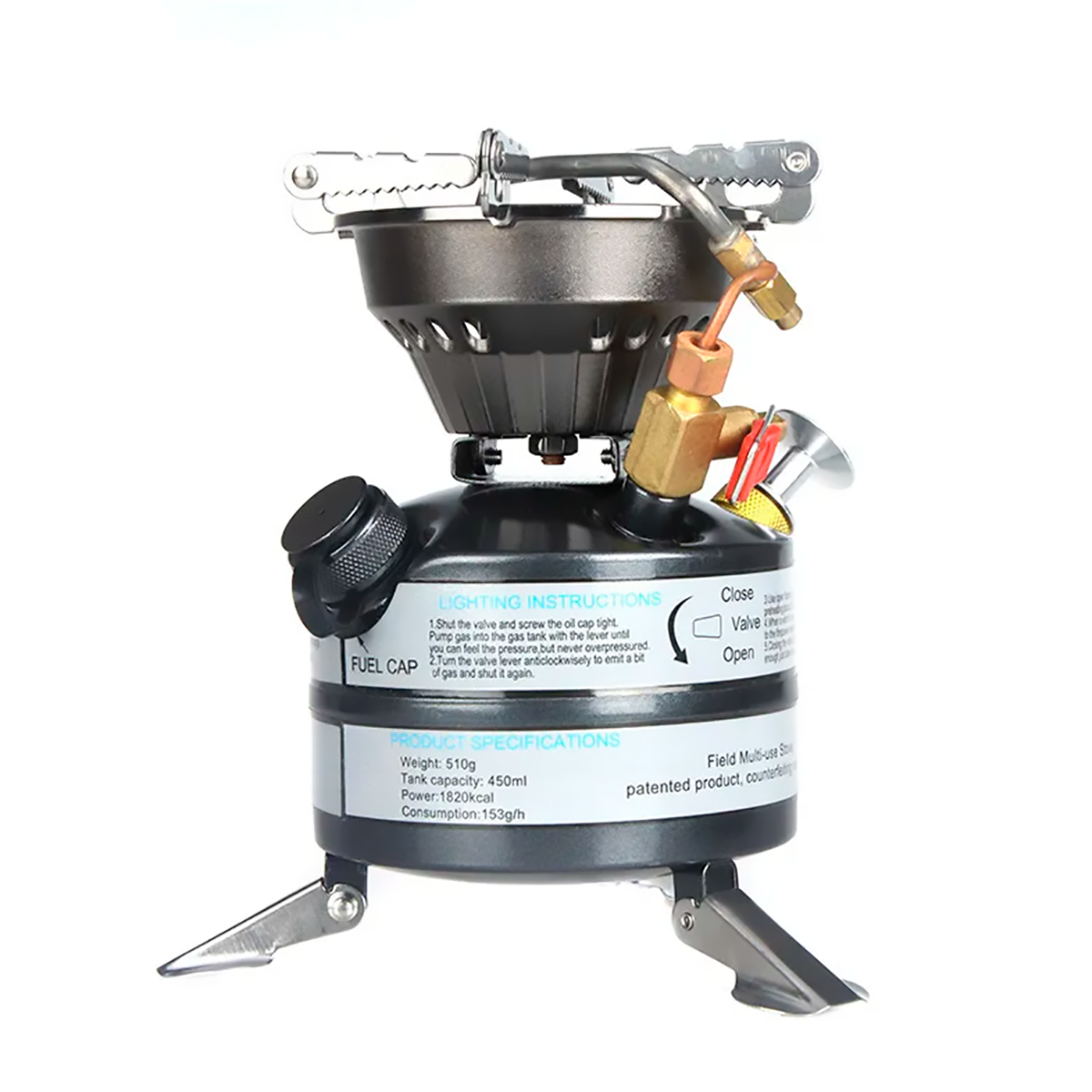 | Особенности конструкции | 1 конфорка, клапанное подключение баллона, регулятор подачи газа |