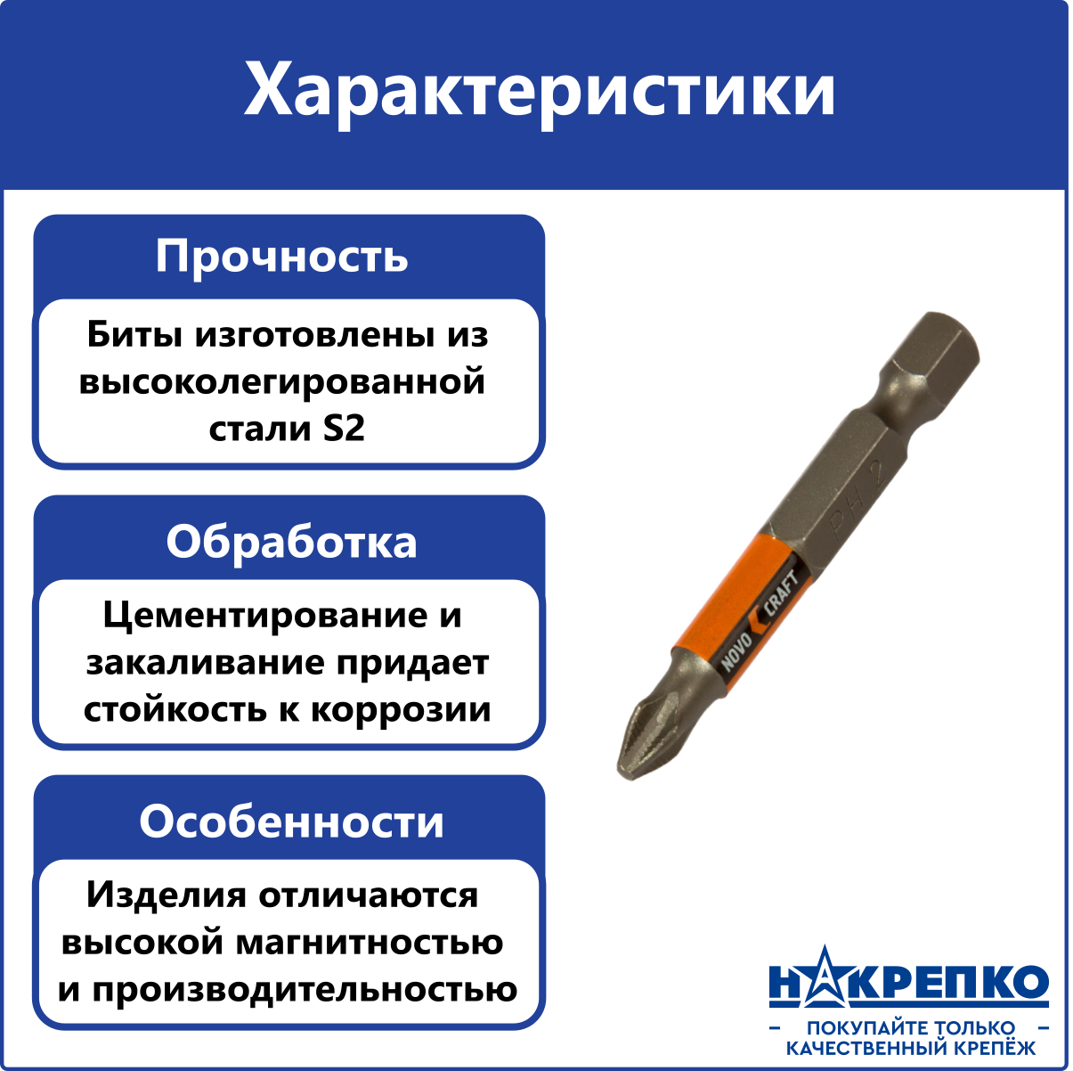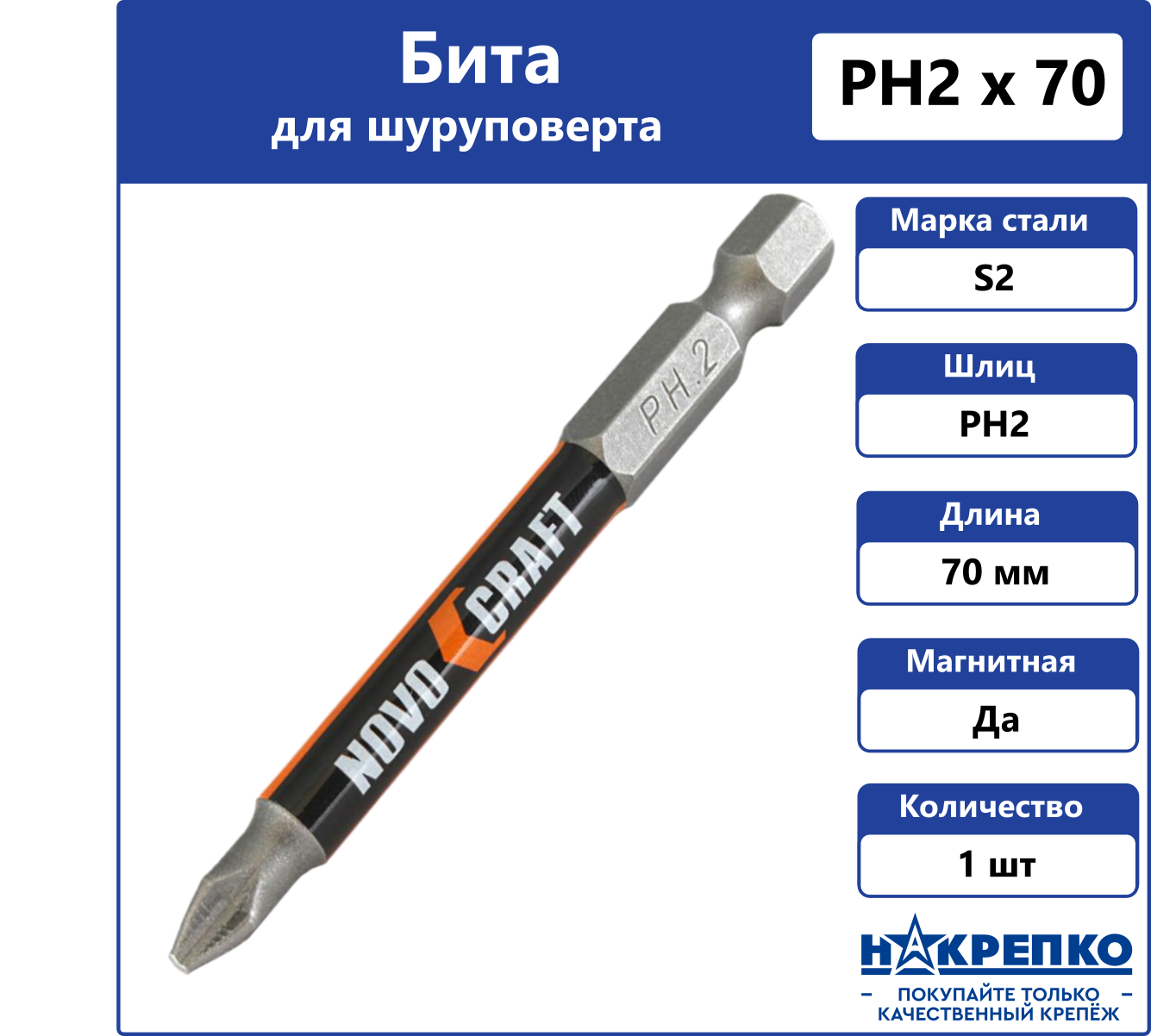 Бита магнитная для шуруповерта PH2 х 70 мм Novocraft интересное: