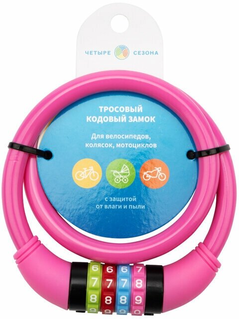 Замок кодовый тросовый Четыре Сезона 65 см для велосипеда, коляски, самоката интересное: