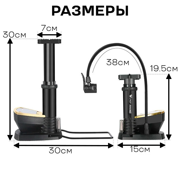 Насос для велосипеда ножной напольный West Biking ниппель Schrader/Presta, с манометром интересное: