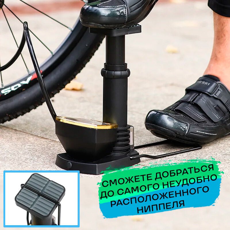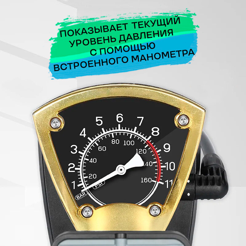 Портативный ножной насос с манометром для велосипеда 140psi