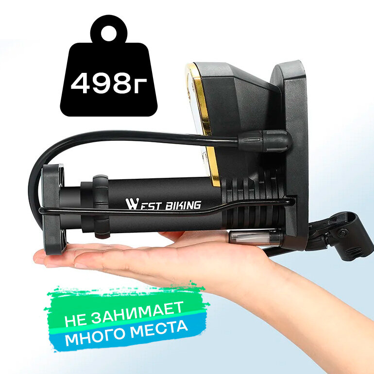 Портативный ножной насос с манометром для велосипедных шин WEST BIKING YP0711118 140psi