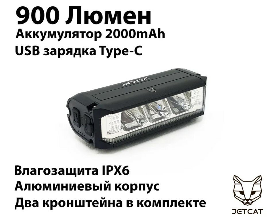 Купить Фонарь велосипедный передний JETCAT LIGHT PRO 900 - светодиодный аккумуляторный c USB
