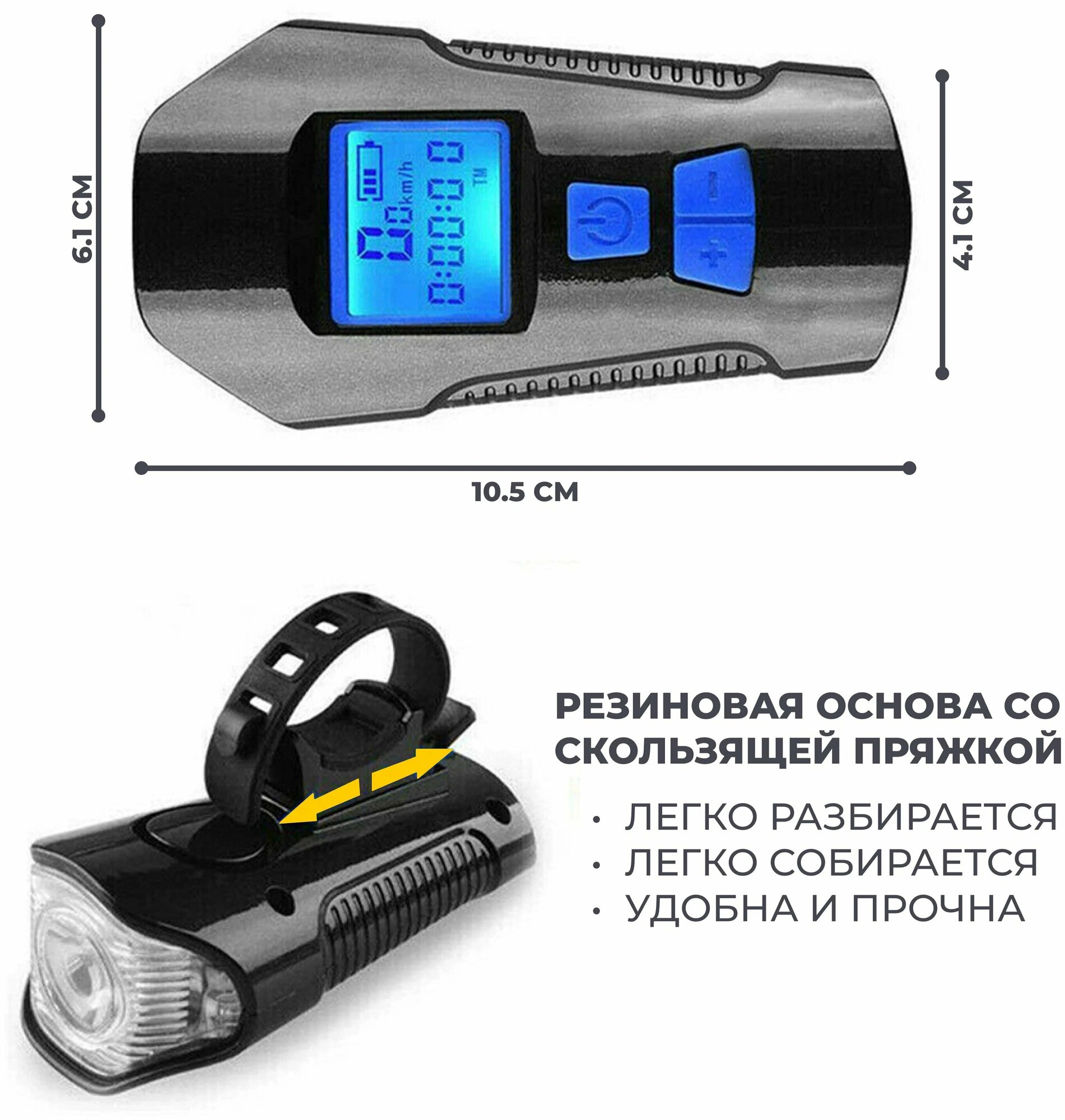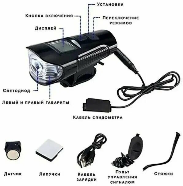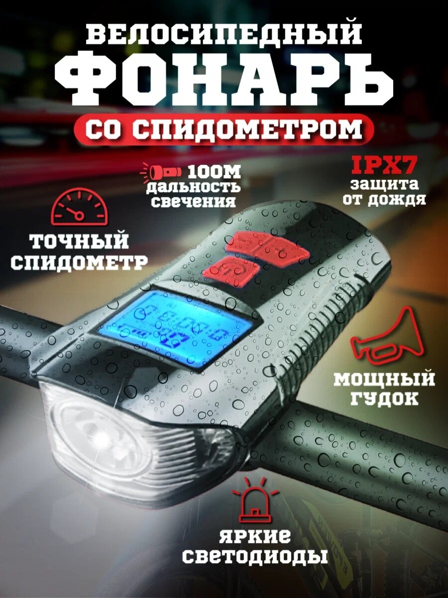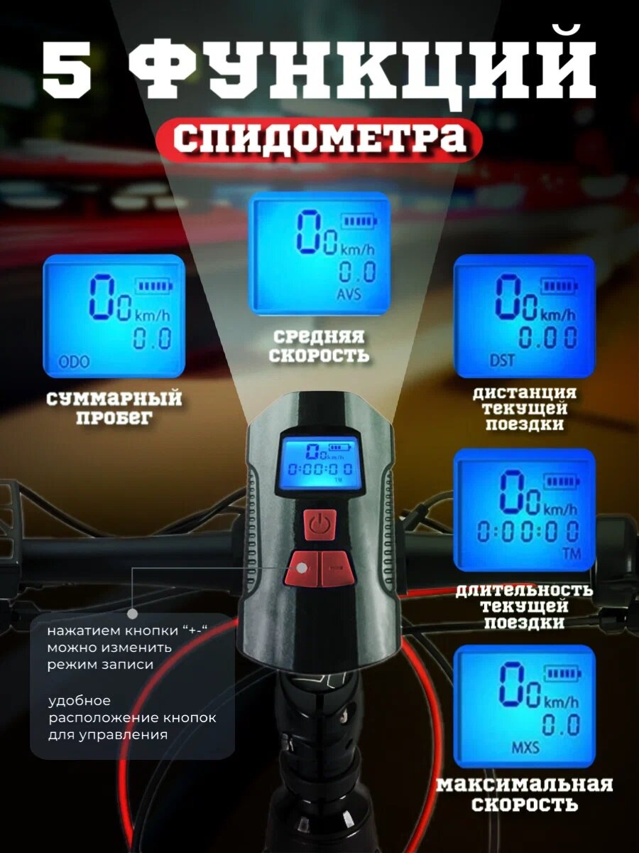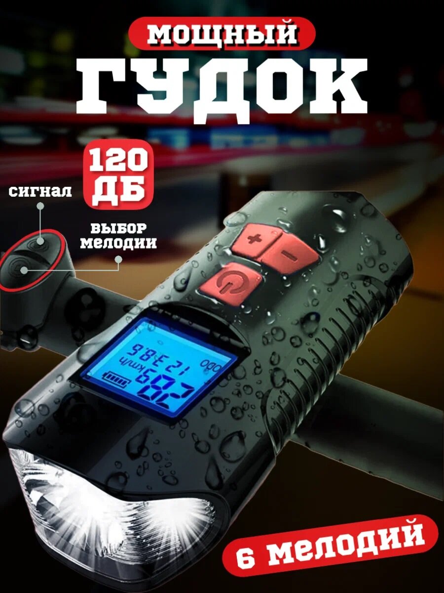 Фонарь спидометр велосипедный со звуковым сигналом/ умный спидометр/ громкий сигнал с ультразвуком интересное: