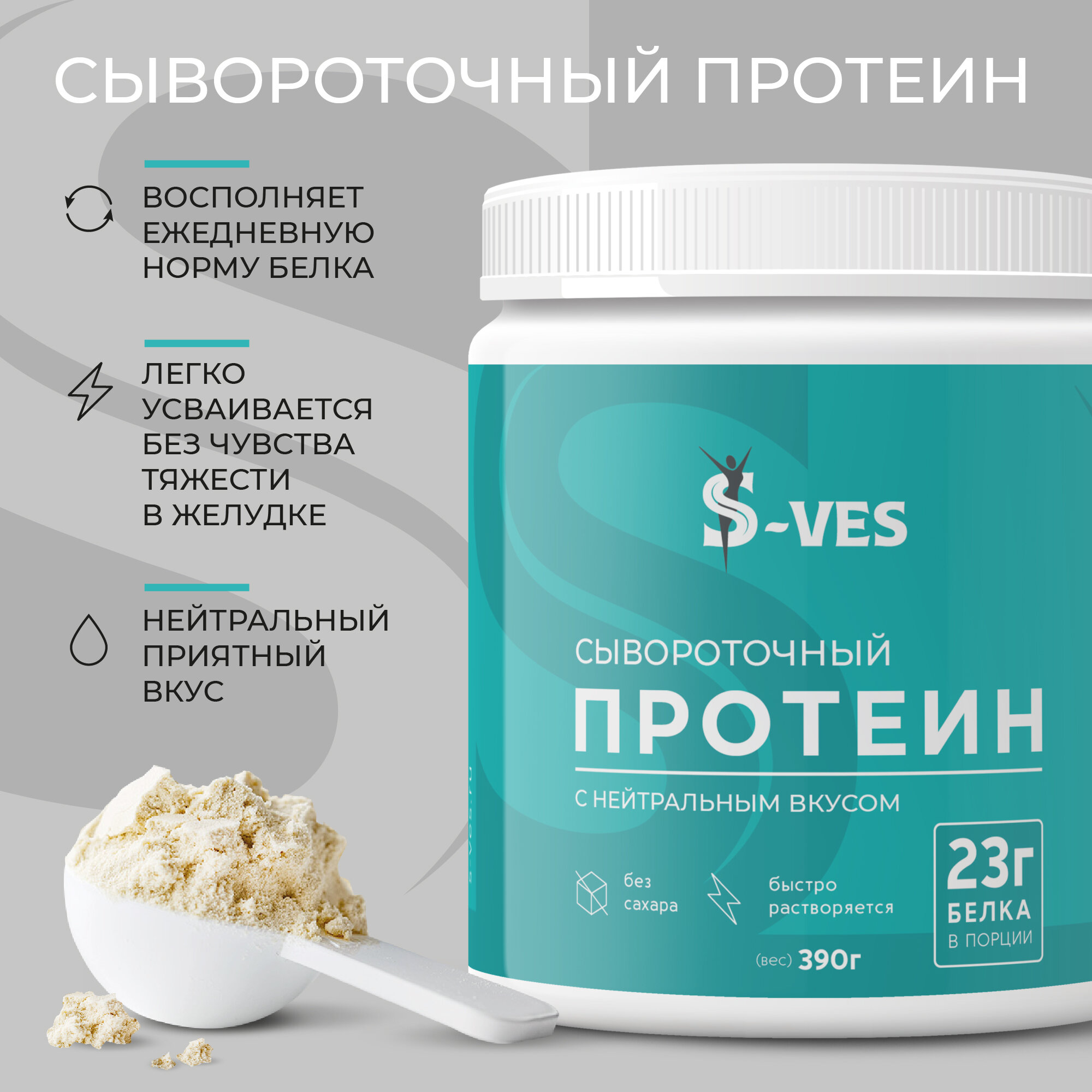 Сывороточный протеин-концентрат безвкусный S-VES Здоровый продукт 390 грамм