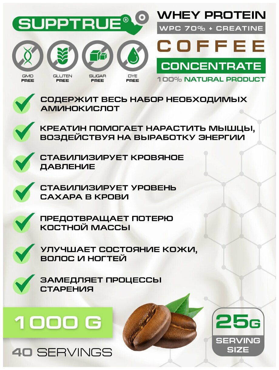 Supptrue Протеин концентрат сывороточного белка + Креатин со вкусом Кофе 1000г интересное: