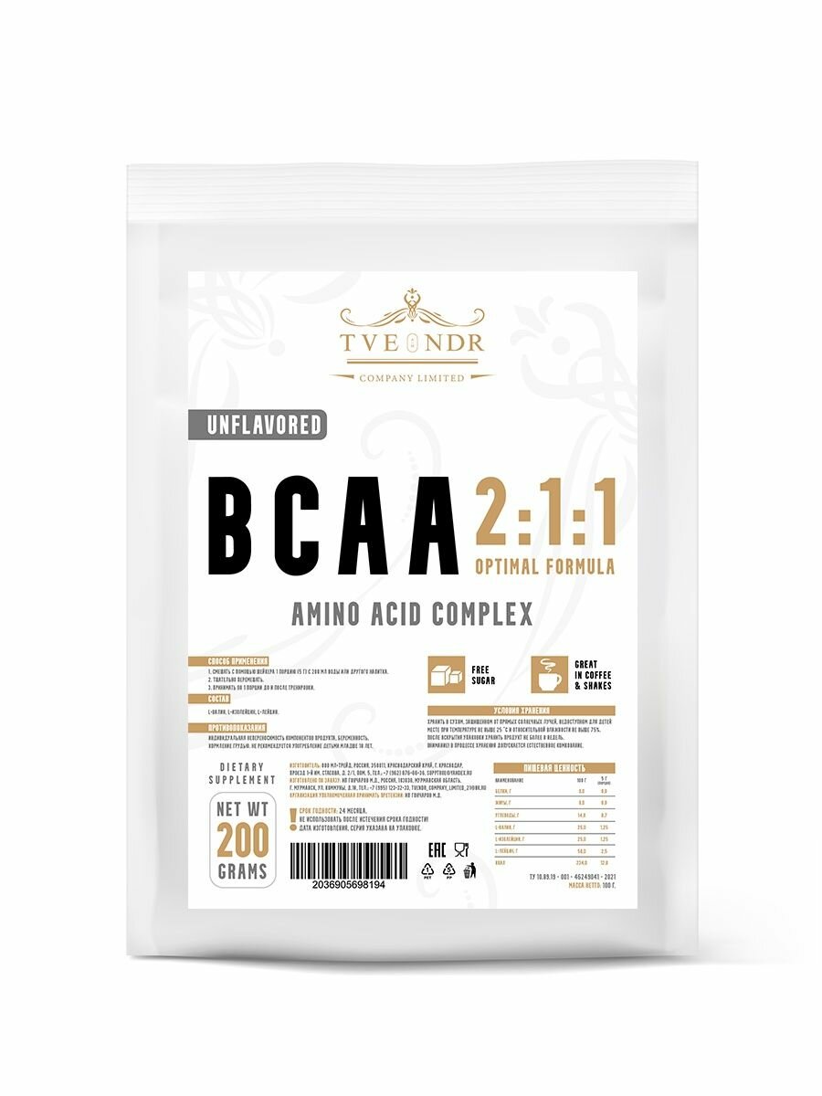 TVENDR Company Limited Порошок BCAA 2:1:1 200гр. Без Вкуса интересное: