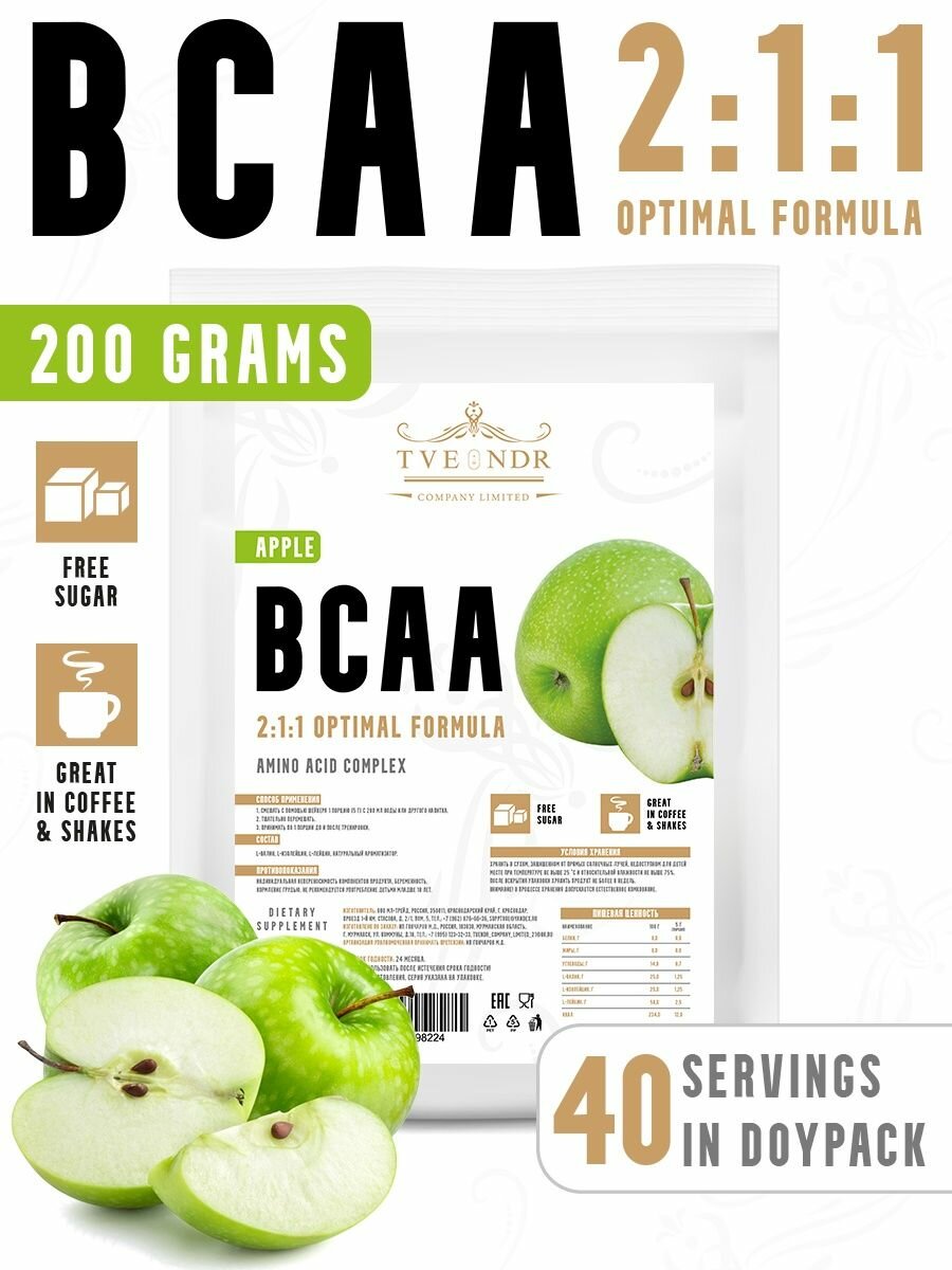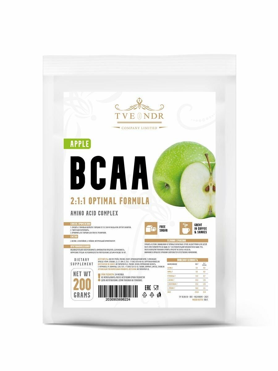 TVENDR Company Limited Порошок BCAA 2:1:1 200гр. Яблоко интересное: