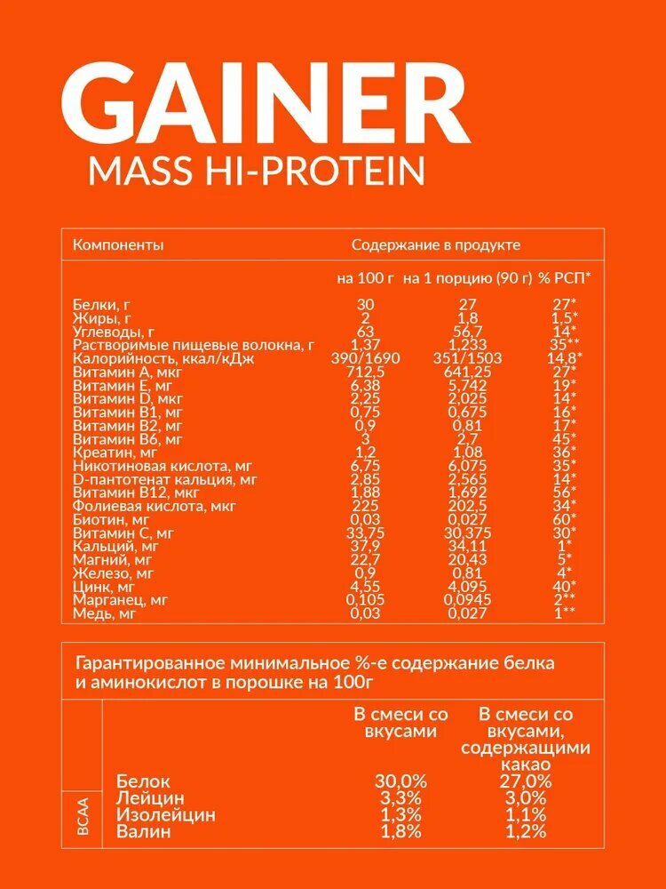 | Плюсы: | Хороший состав , высокобелковый гейнер .