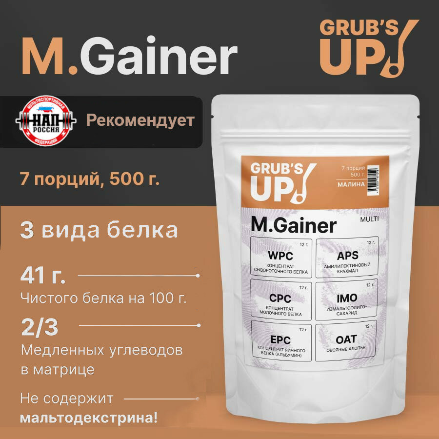 Купить Белково-углеводный коктейль (гейнер) Grub's up! M.Gainer малина 500гр