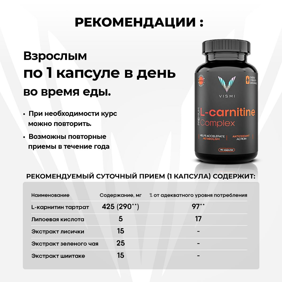 Купить L-карнитин комплекс, жиросжигатель, VISMI, 90 капсул