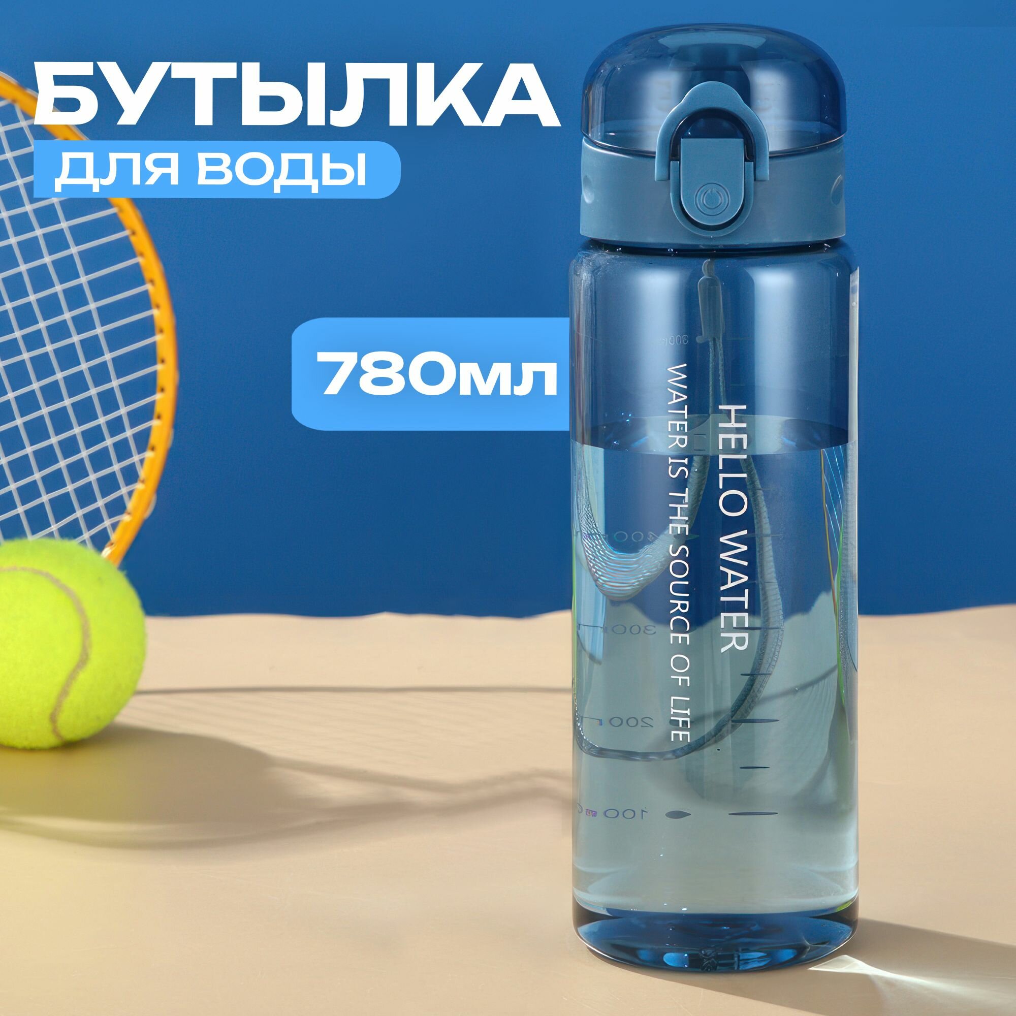Бутылка для воды спортивная с клапаном 780мл. Синий интересное: