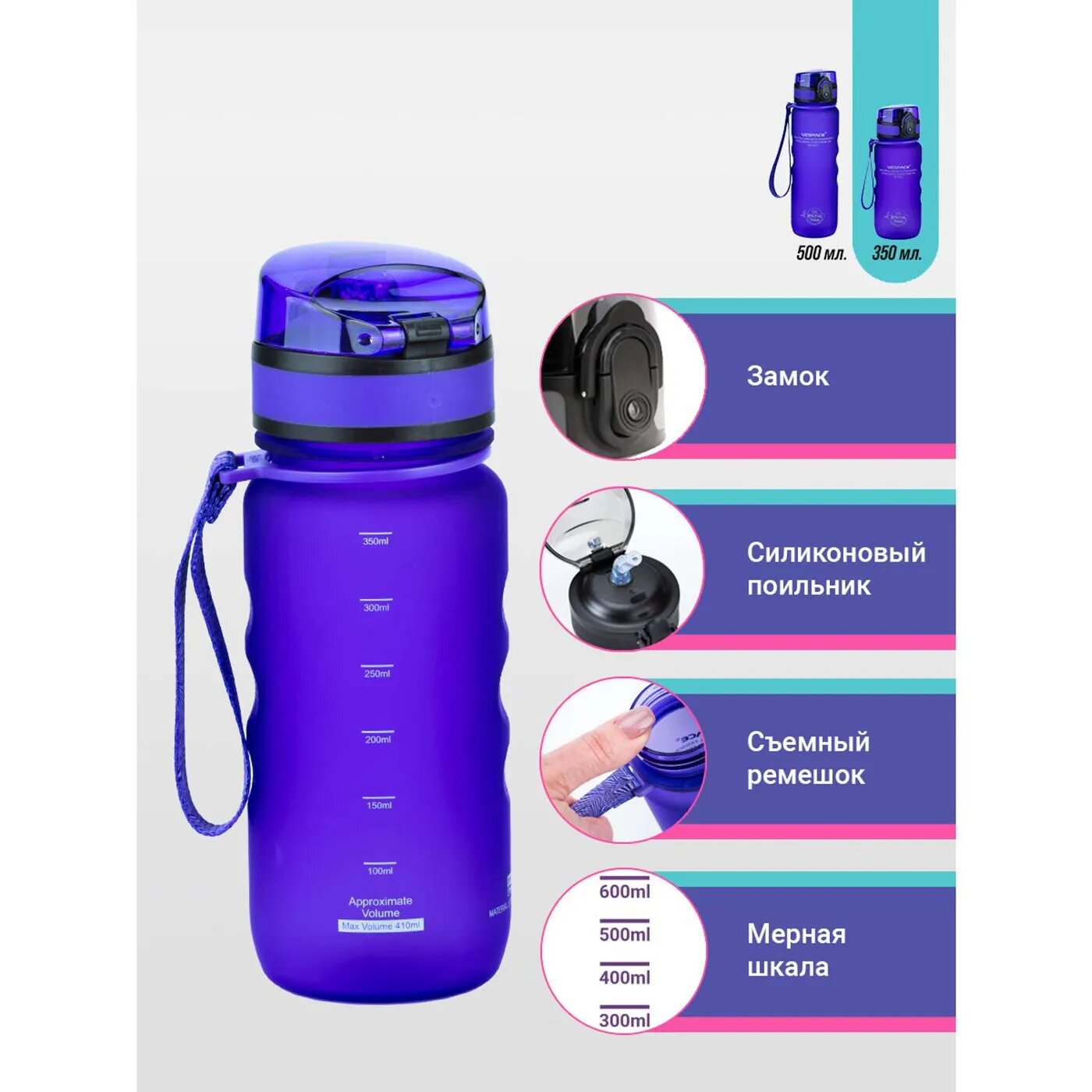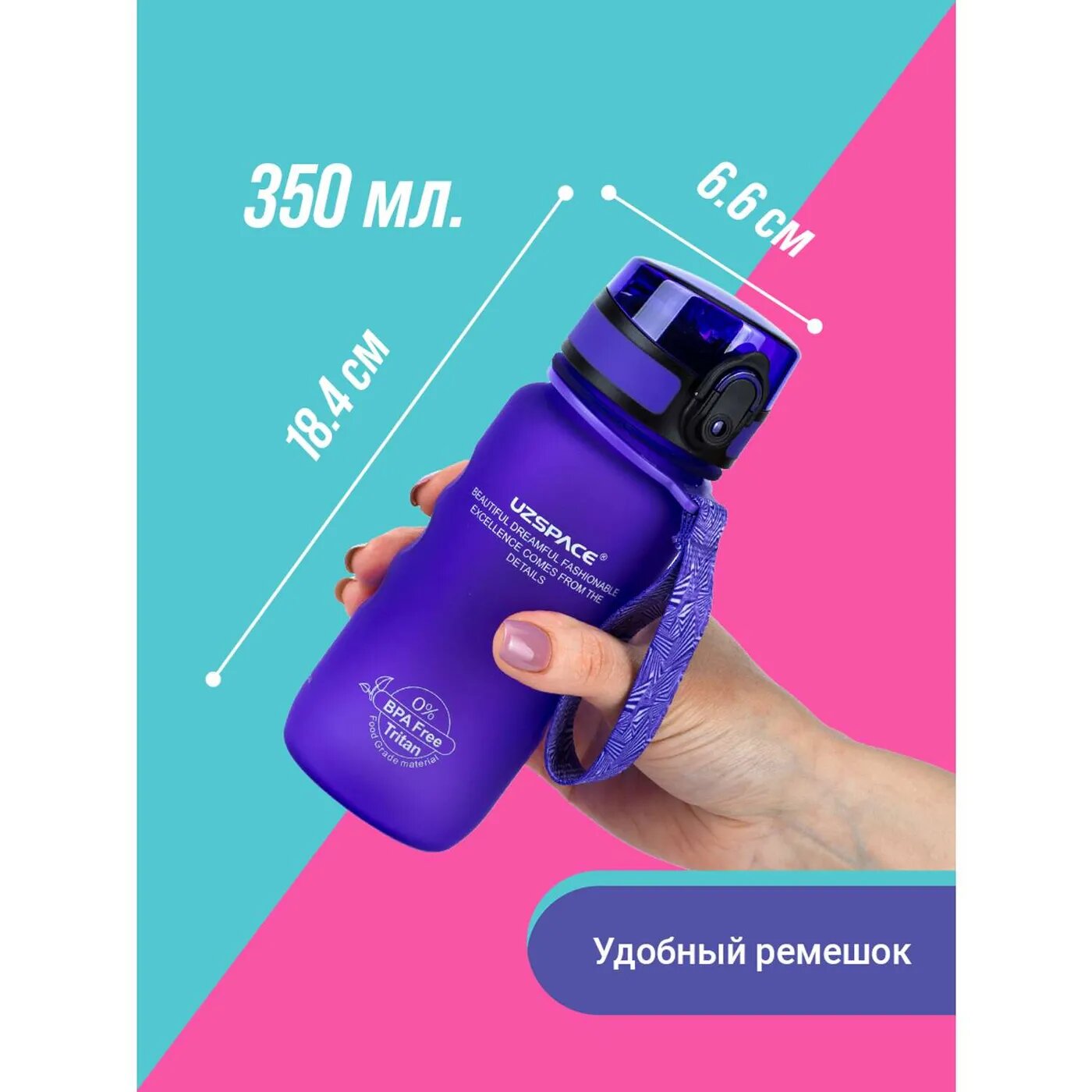 Бутылка для воды спортивная из тритана UZSPACE 350 мл фиолетовый интересное: