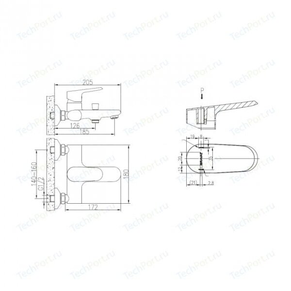 Bravat Смеситель Bravat Pure F6105161C-01 для ванны с душем