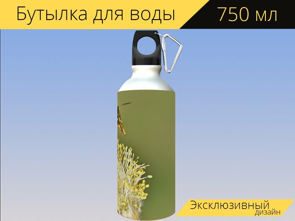 Бутылка фляга для воды "Шмель, насекомое, ивовая сережка" 750 мл. с карабином и принтом интересное:
