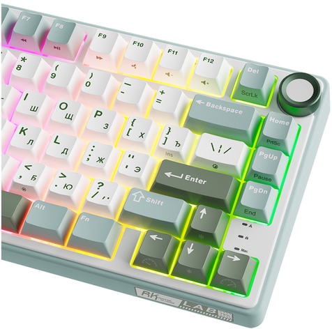 | Дополнительная информация | Подсветка: RGB, 16,8 млн. цветов; Символы не пропускают свет, не подсвечиваются; Технология нанесения символов: Double shot для русской и английской раскладки; Hot swap; Шумоизоляция; Gasket структура; Cмазанные переключатели и стабилизаторы; Программное обеспечение Royal Kludge, скачать можно на сайте компании Зеон, в карточке товара |
