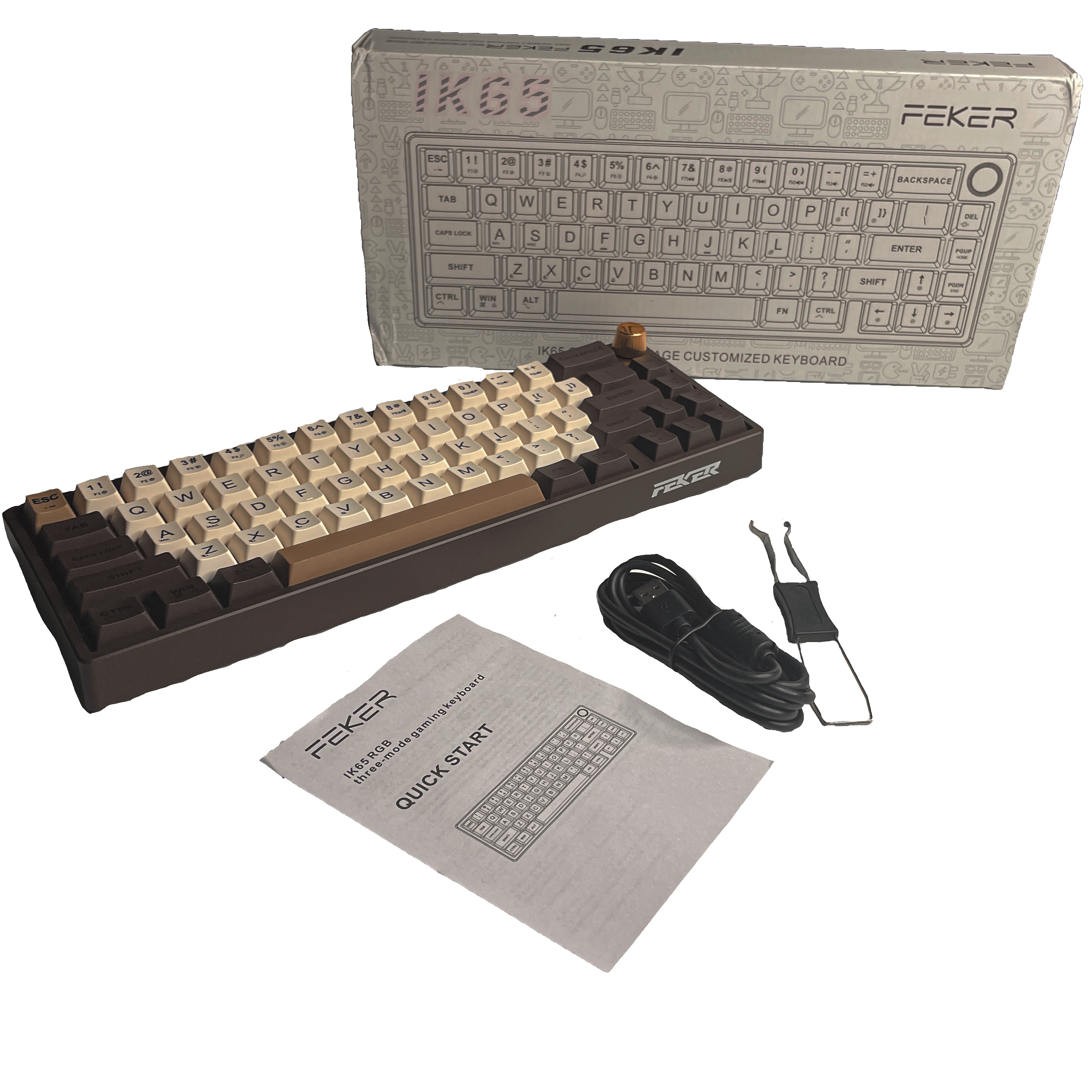 | Комплектация | 1 * Механическая клавиатура FEKER IK65;1 * кабель типа c;1 * приемник 2,4G;1 * Съемник клавишных колпачков и переключателей;1 * пылезащитный чехол;1 * руководство |