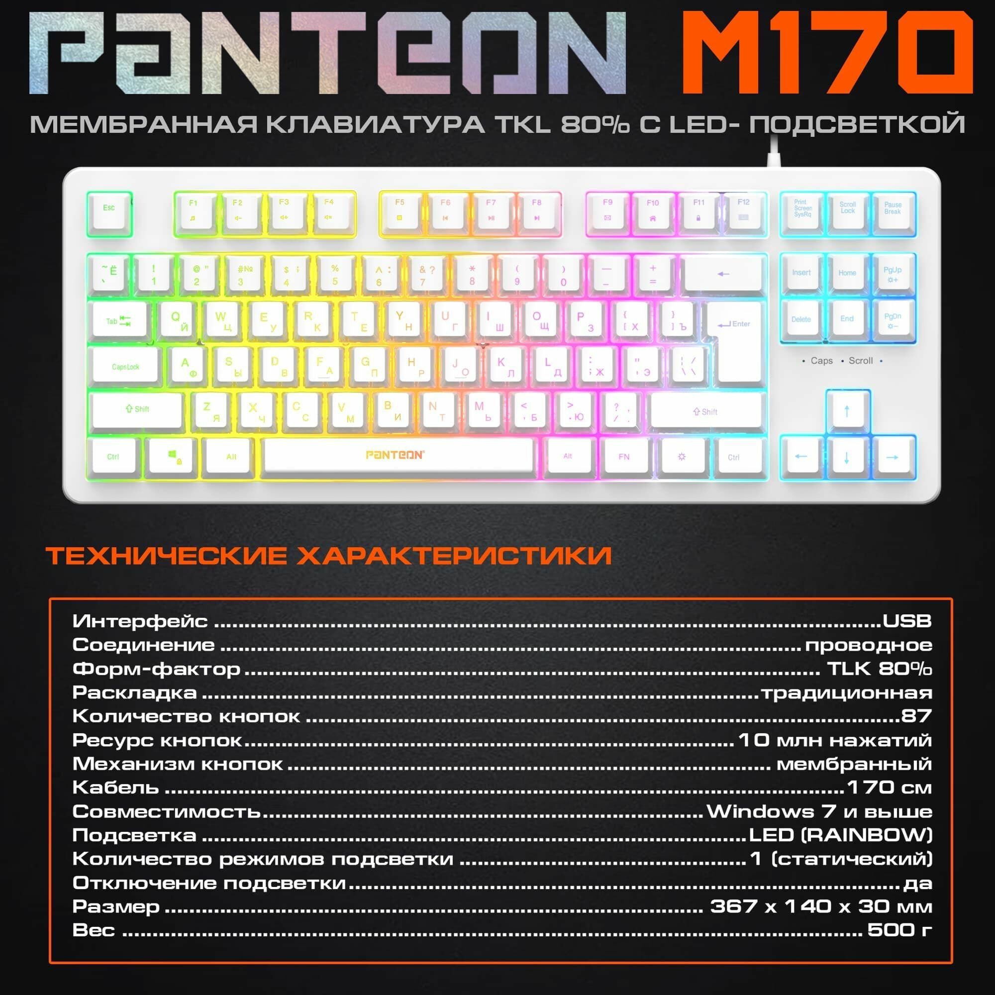Игровая мембранная клавиатура С led-подсветкой PANTEON M170 бел интересное: