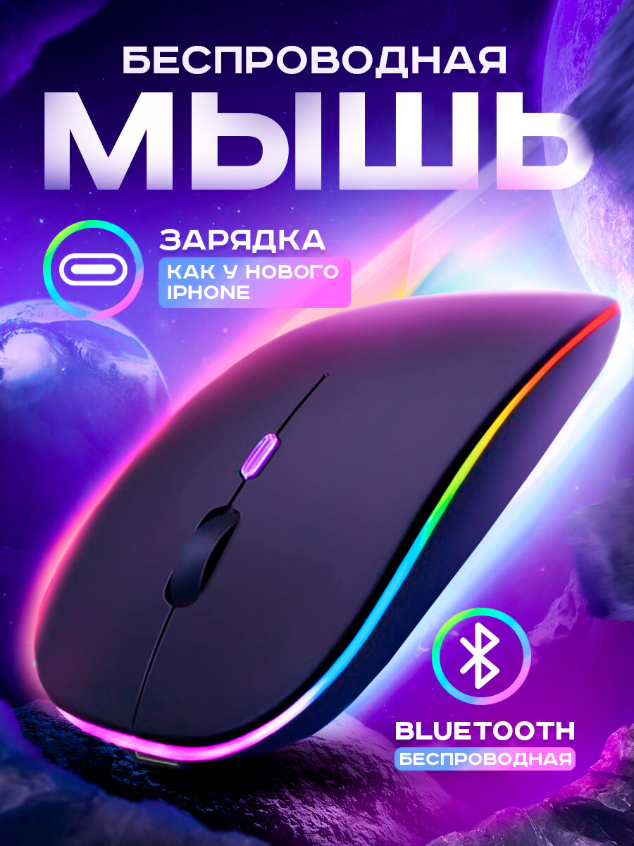 Мышь беспроводная для ноутбука FTP с Bluetooth зарядка Type-C, цвет черный интересное: