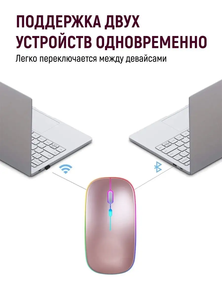 Беспроводная мышка для компьютера со встроенным аккумулятором/ Бесшумная блютуз компьютерная мышь с подсветкой RGB/ Bluetooth/ WiFi 2.4 гц матовая