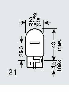 Лампа WY21W (21W) WX3x16d стеклянный цоколь, OSRAM 7504 (1 шт.)