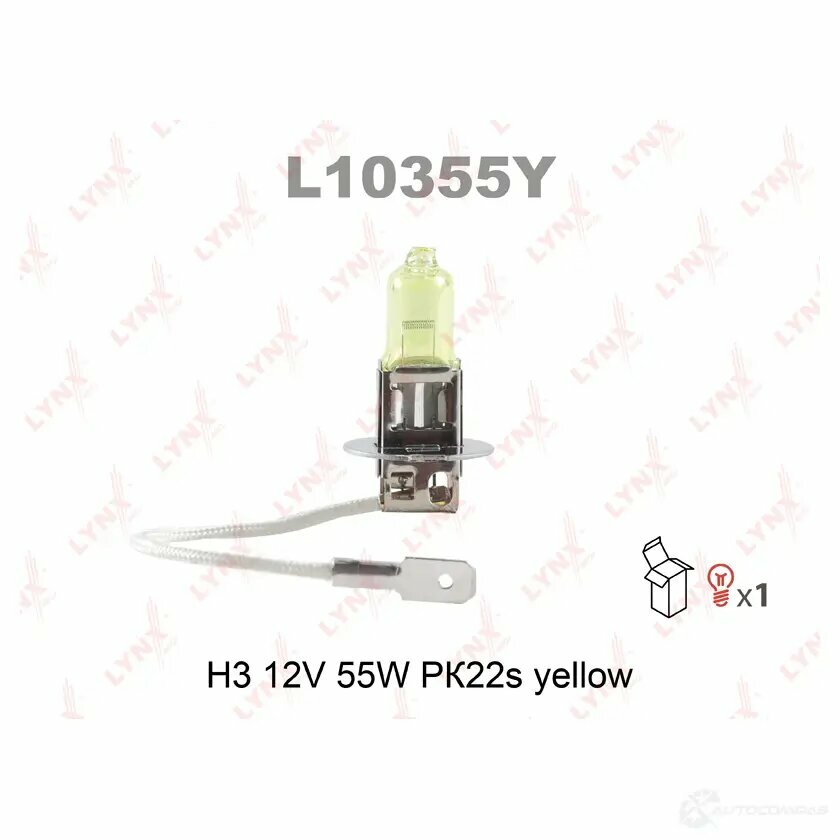 Купить L10355Y LYNXAUTO Лампа галогенная H3 12V 55W PK22s YELLOW