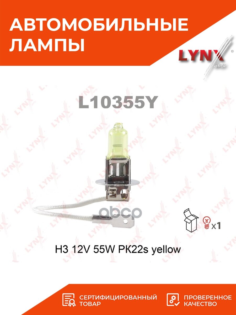 L10355Y LYNXAUTO Лампа галогенная H3 12V 55W PK22s YELLOW интересное: