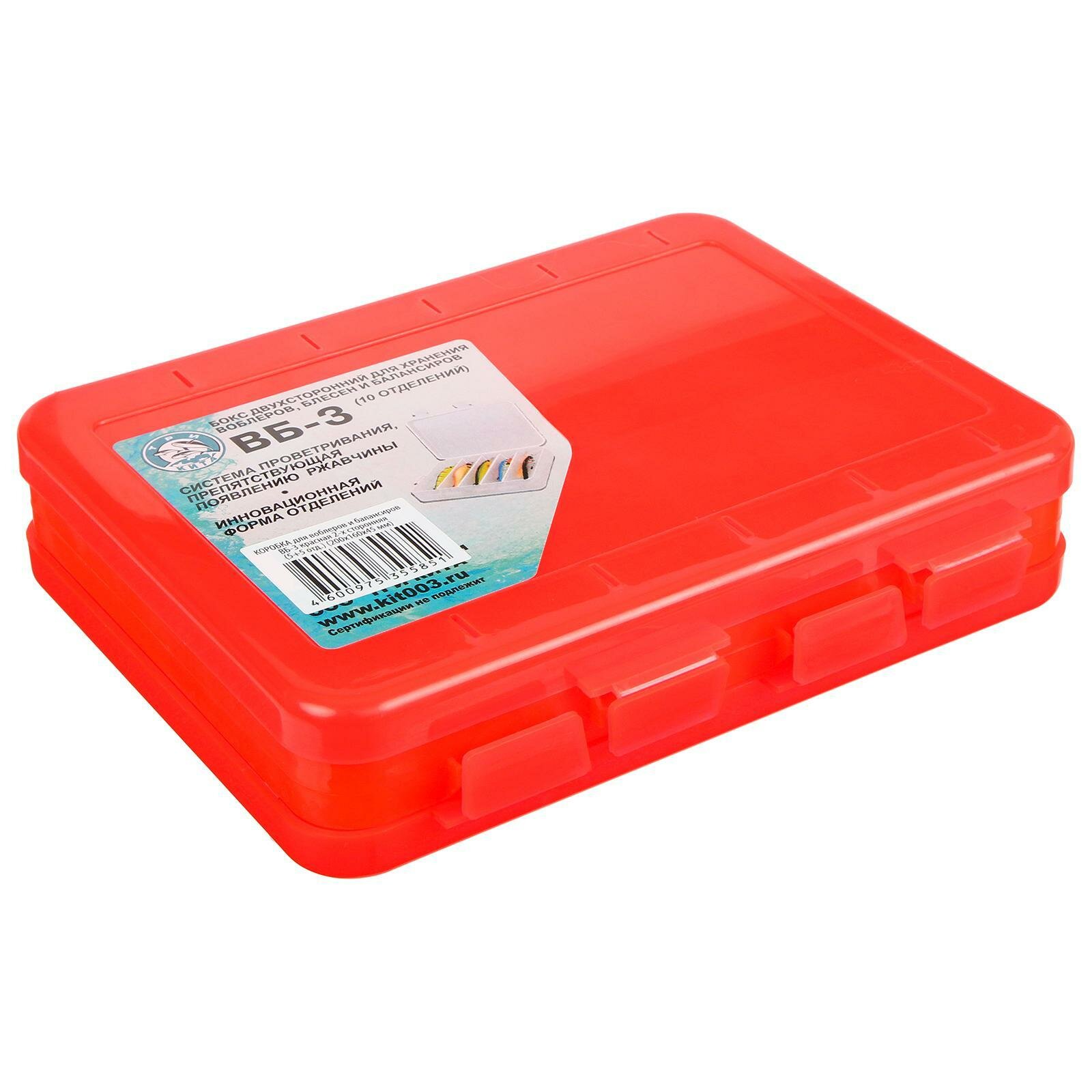 Купить Коробка для воблеров и балансиров ВБ-3, цвет красный, 2-сторонняя, 5+5 отделений, 200 ? 160 ? 45 мм