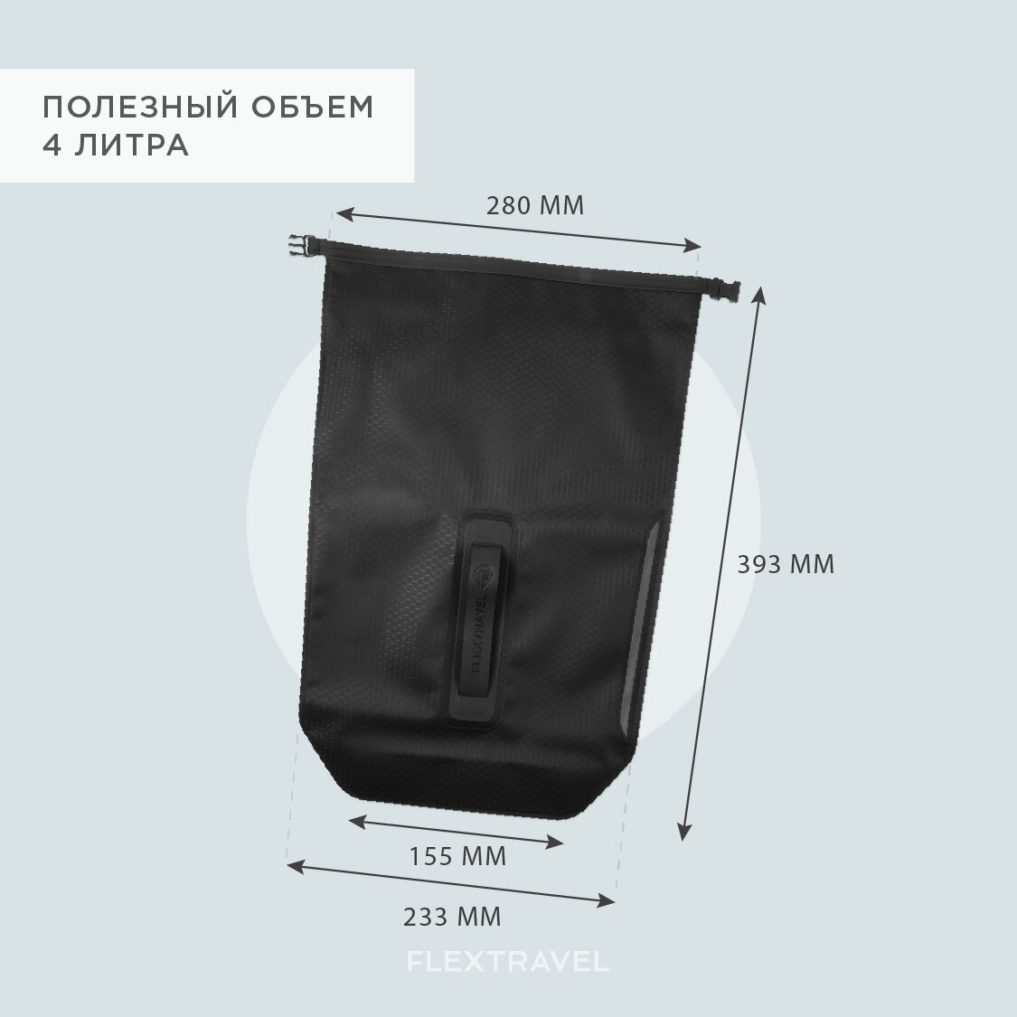 Купить Универсальный гермомешочек FlexTravel, водонепроницаемый мешок на 4 литра, черный
