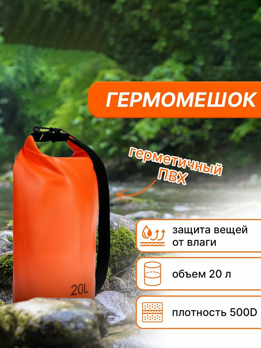 Гермомешок туристический maclay, 20 л, 500D, цвет оранжевый