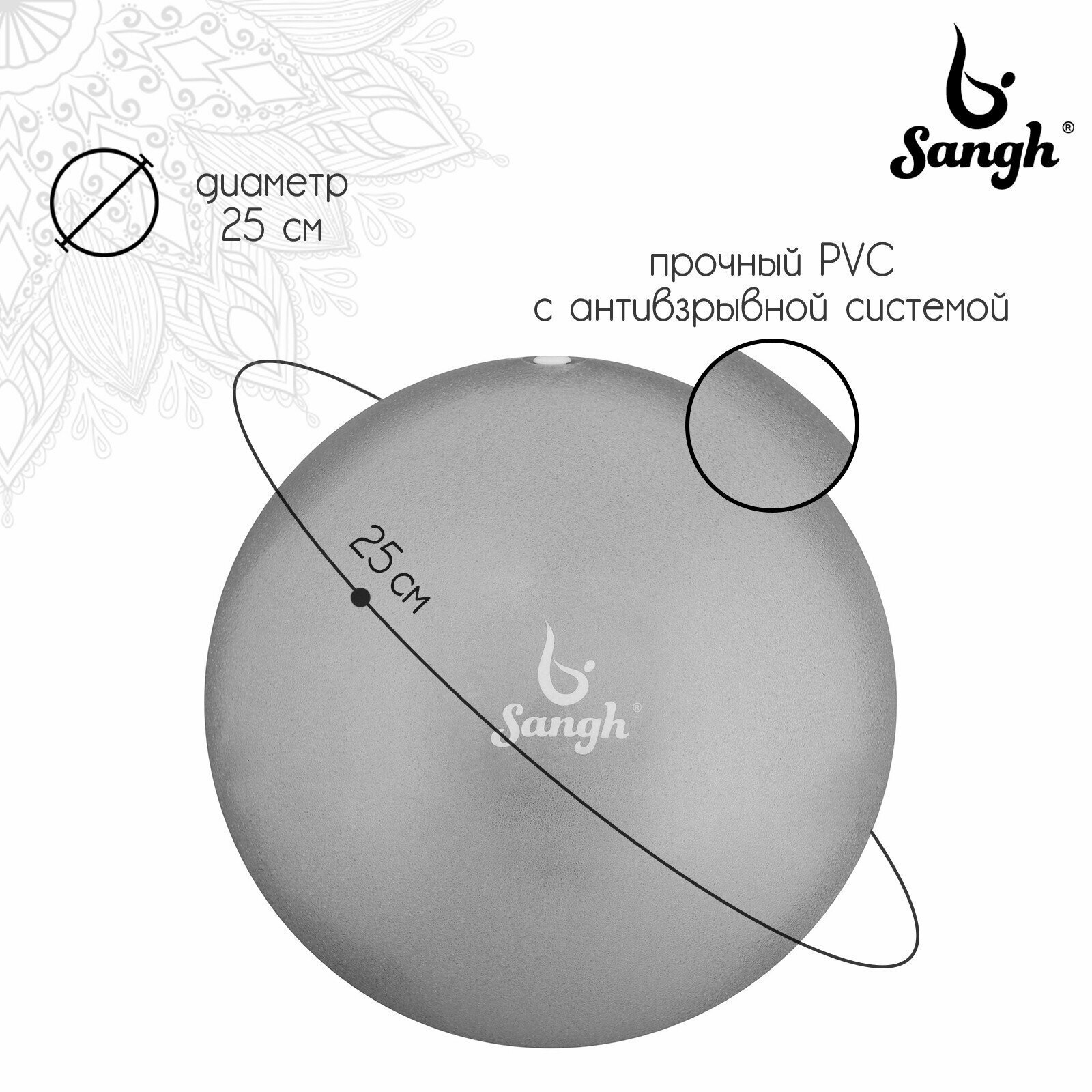 Купить Мяч Sangh, для йоги, диаметр 25 см, вес 100 г, цвет серый