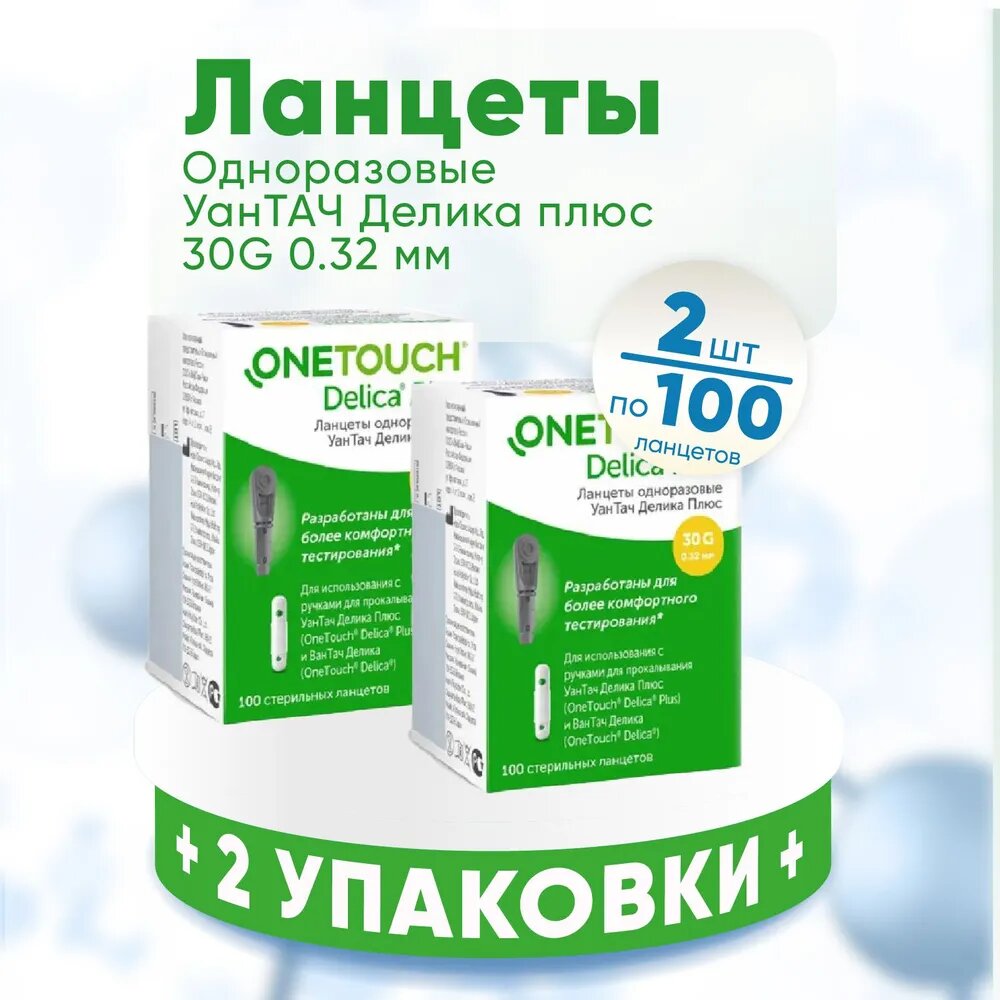 Ланцеты Ван Тач Делика Плюс, 2 упаковки по 100 штук, комплект из 2х упаковок (One Touch Delica интересное: