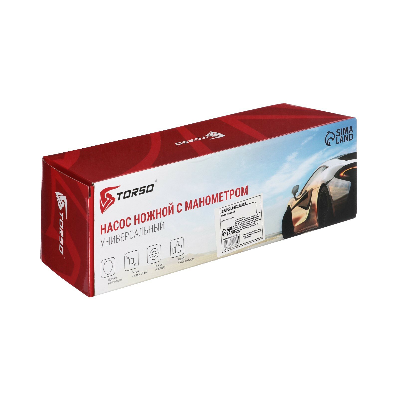 Купить Насос TORSO Автомобильный, ножной, с манометром, 1 цилиндр, усиленный