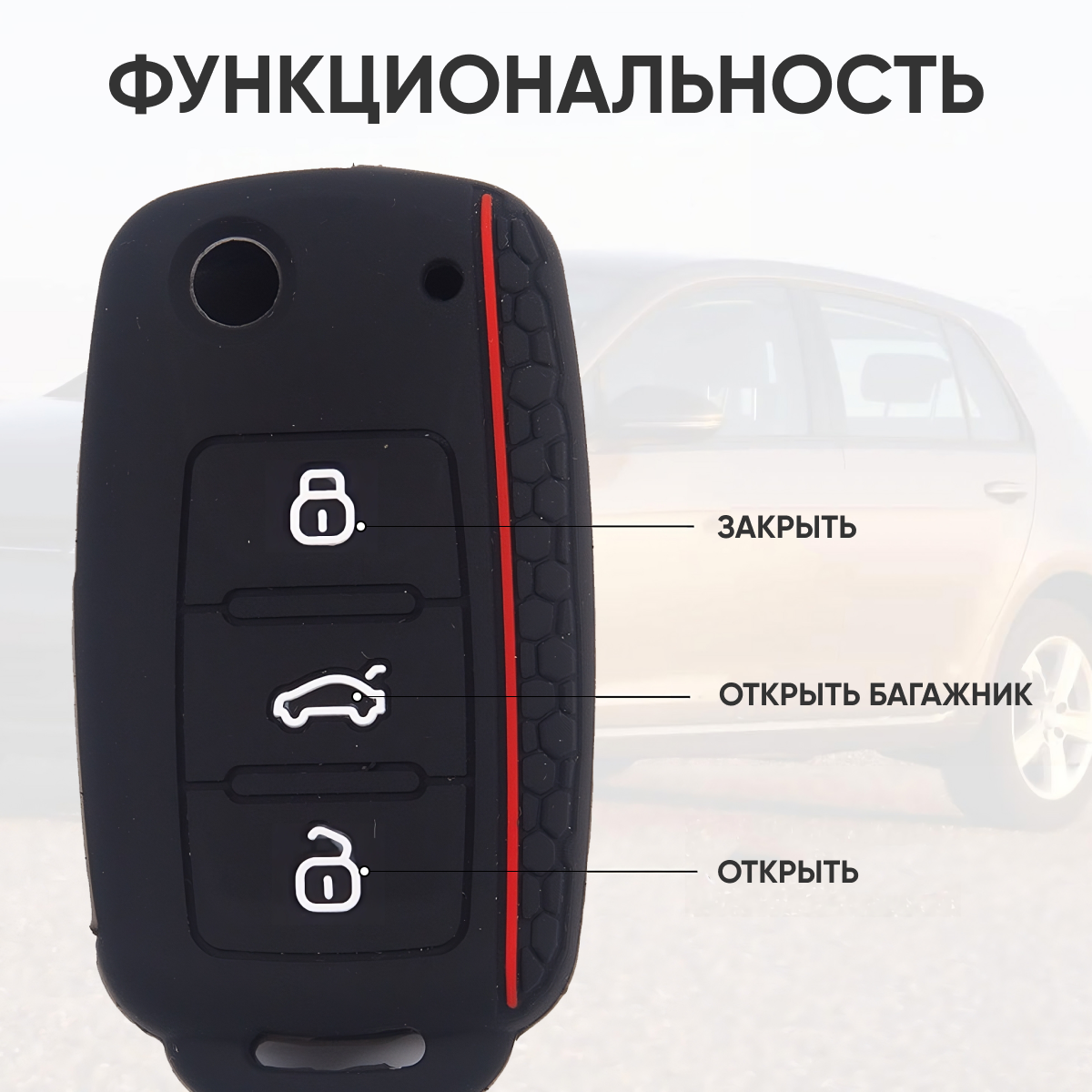 Чехол силиконовый для автомобильного ключа Фольксваген, Шкода, Сеат (Volkswagen, VW, Skoda, Seat) (черный) интересное: