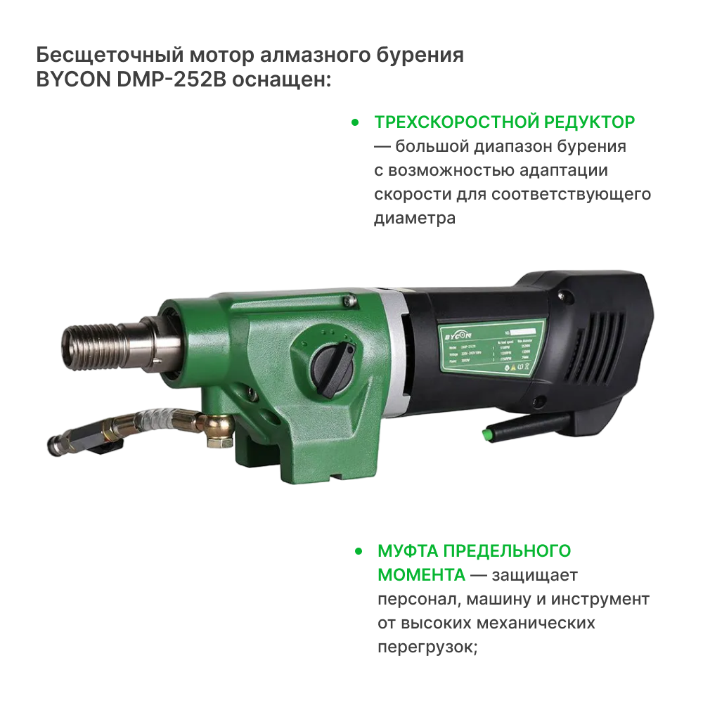 Бесщеточный мотор алмазного бурения Bycon DMP-252B Байкон интересное: