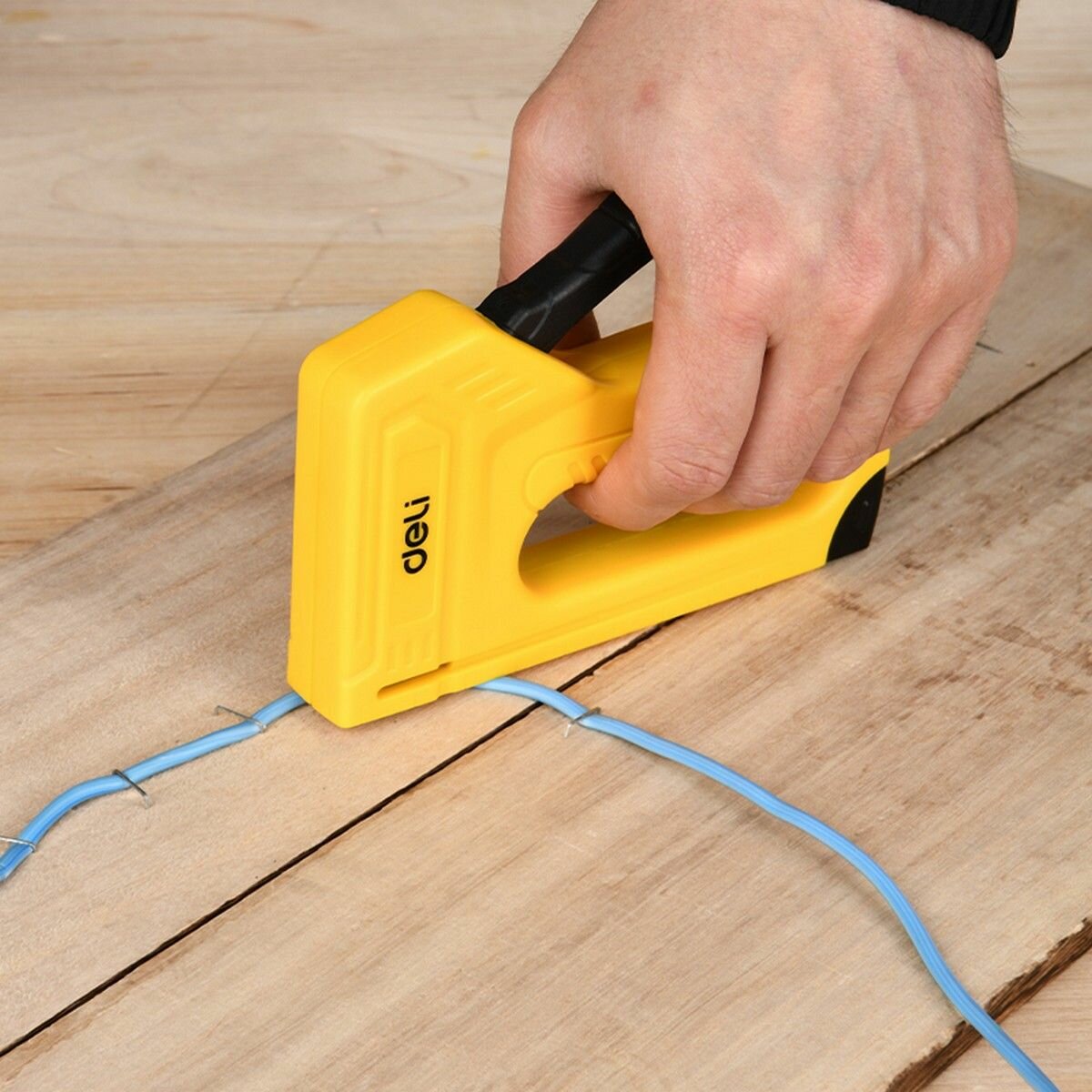 Мебельный строительный пластиковый степлер Deli DL238002 + 400 скоб (D-скобы тип 53/53А, размер 4-10) интересное: