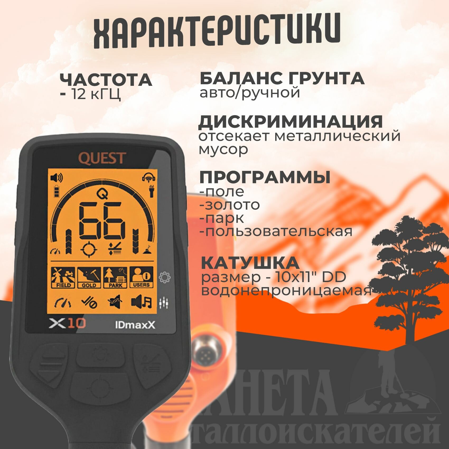 Металлоискатель Quest X10 IDmaxX - подводный металлоискатель для начинающих интересное: