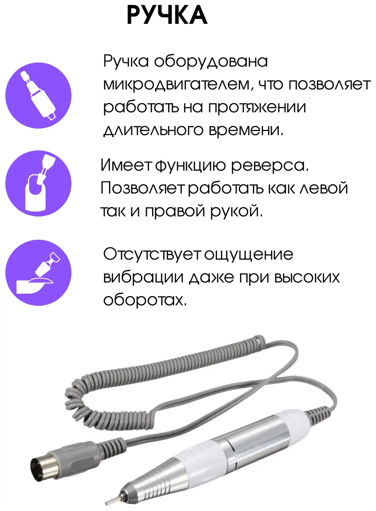 Ручка для аппаратного маникюра 30000 об/мин, белая интересное: