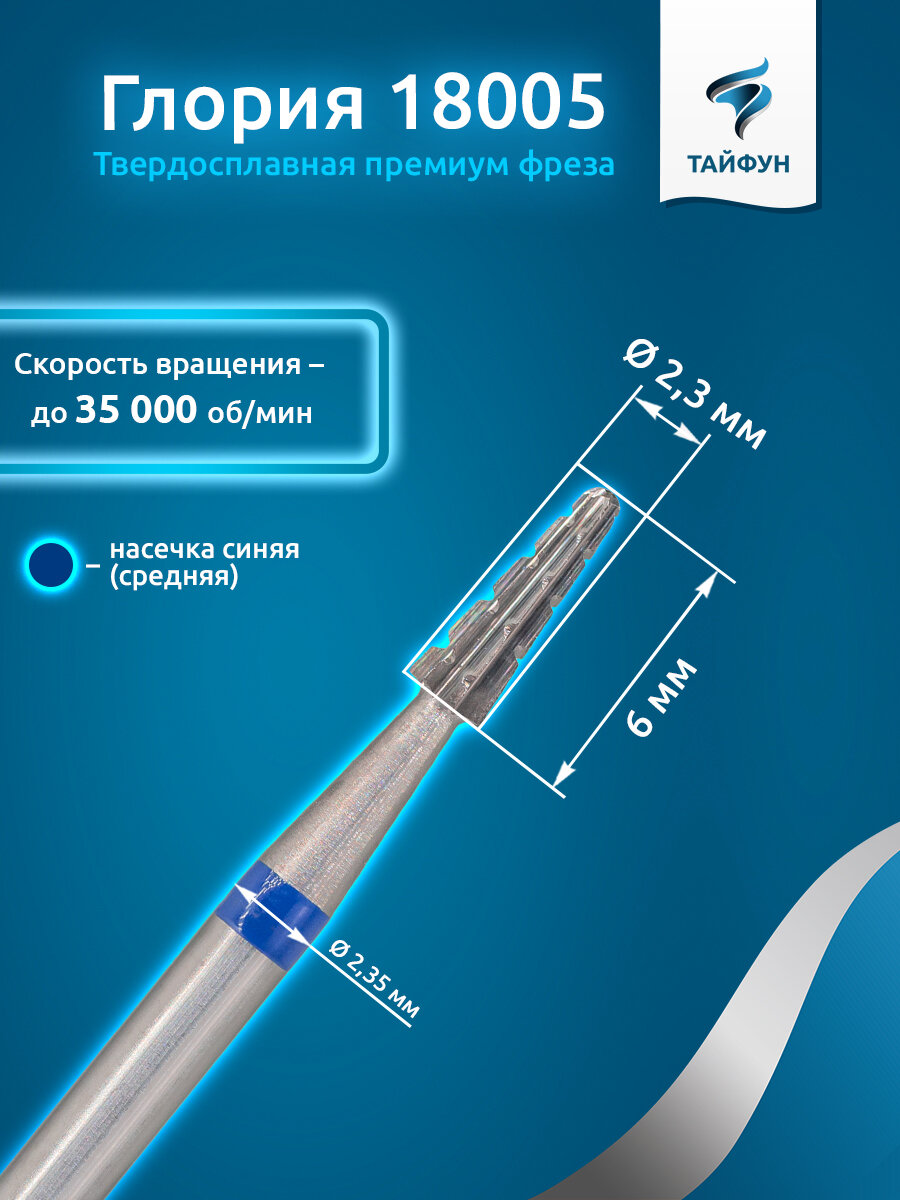 Твердосплавная фреза Тайфун Глория 18005 (конус закругленный), средняя, D2,3, L6 интересное: