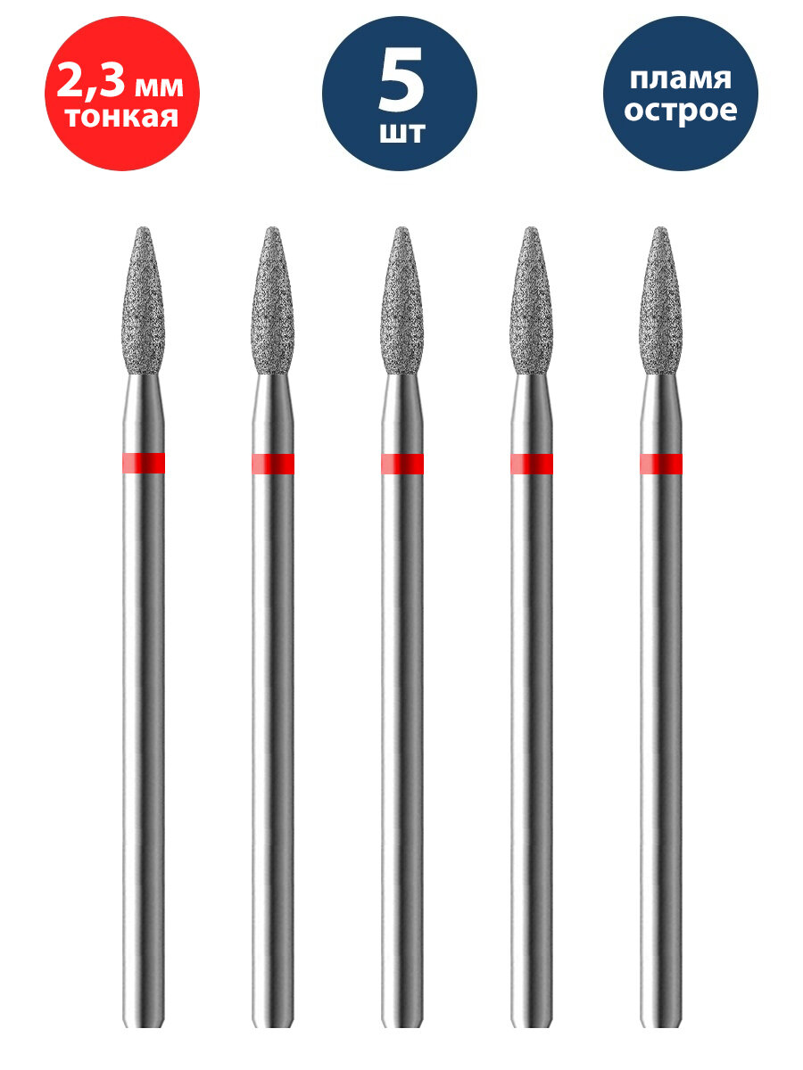 Фреза для маникюра и педикюра алмазная ВладМиВа для кутикулы 806 104 243N 514 023 Тонкая пламя (упаковка 5 шт)