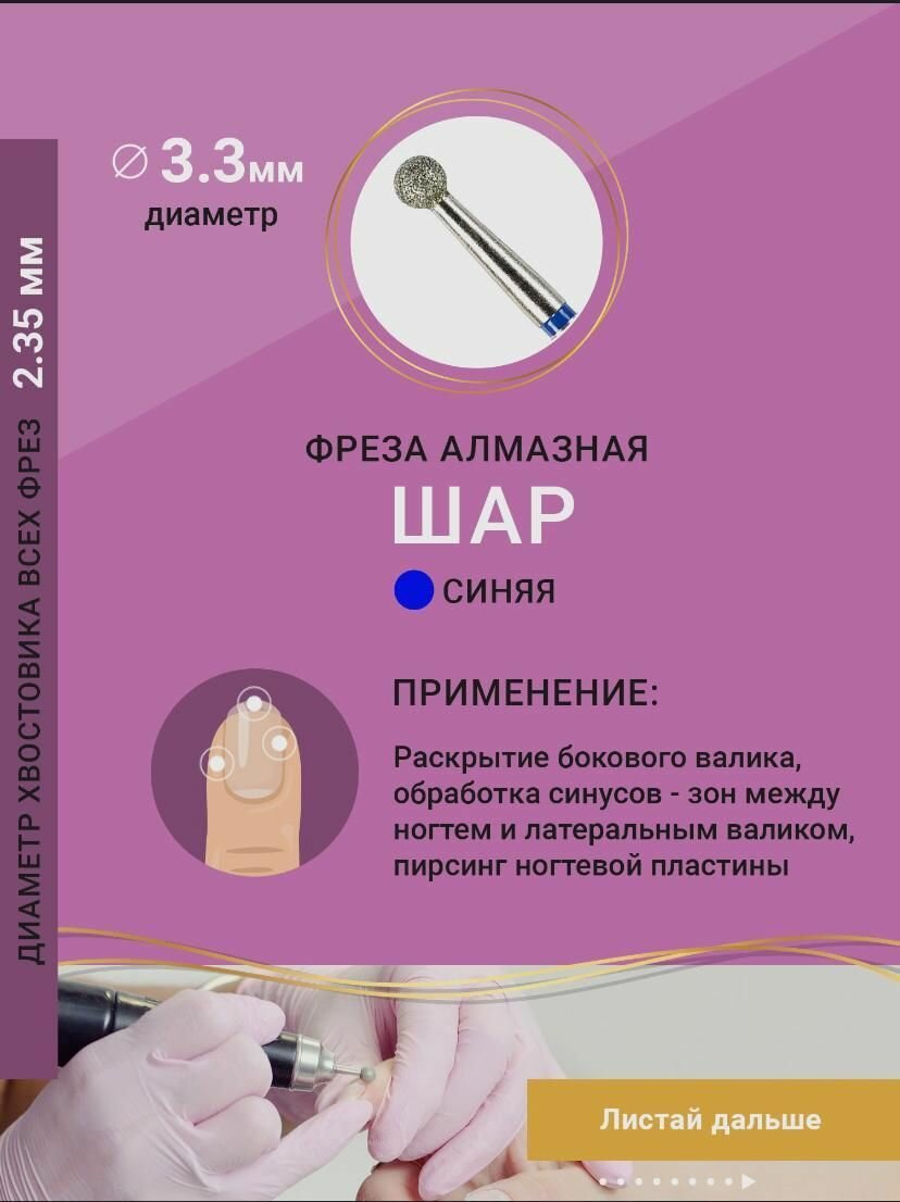 DIAMANIQ Фреза для маникюра и педикюра алмазная 825 001 524 021 Средняя синяя шар d-2.1