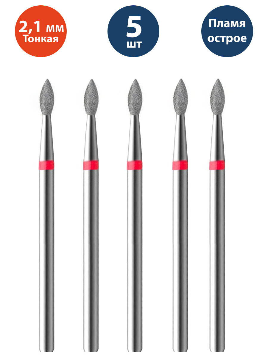 Фреза для маникюра и педикюра алмазная ВладМиВа для кутикулы 806 104 257 514 021 Тонкая пламя (упаковка 5 шт)