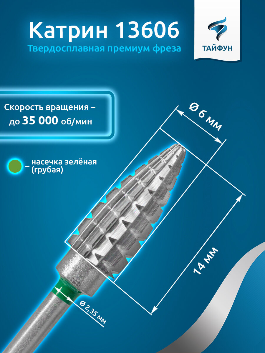 Тайфун, Твердосплавная фреза Катрин 13606 (кукуруза), крупная, D6, L14 интересное: