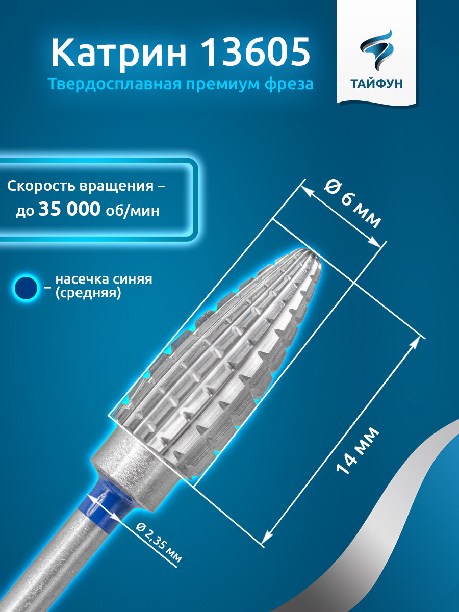Тайфун, Твердосплавная фреза Катрин 13605 (кукуруза), средняя, D6, L14 интересное: