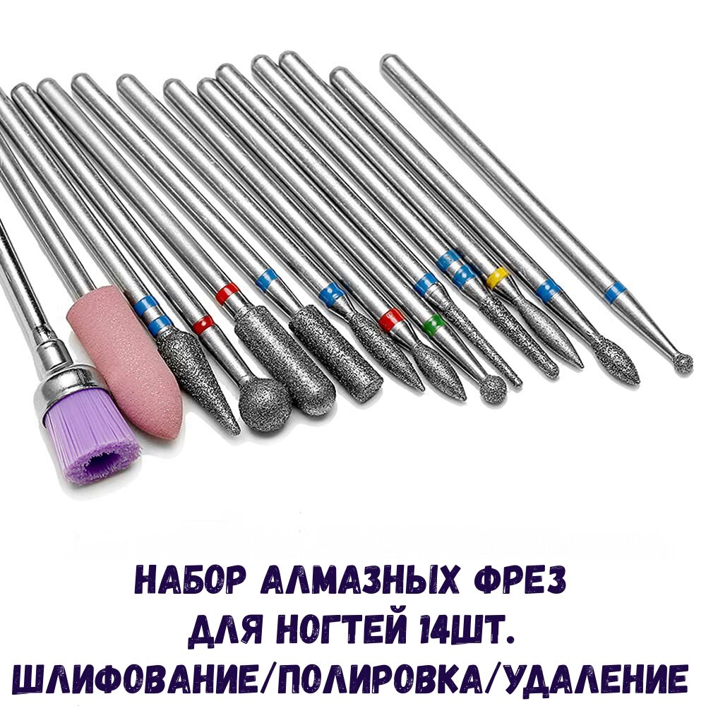 Набор алмазных фрез для маникюра и педикюра 14 штук интересное: