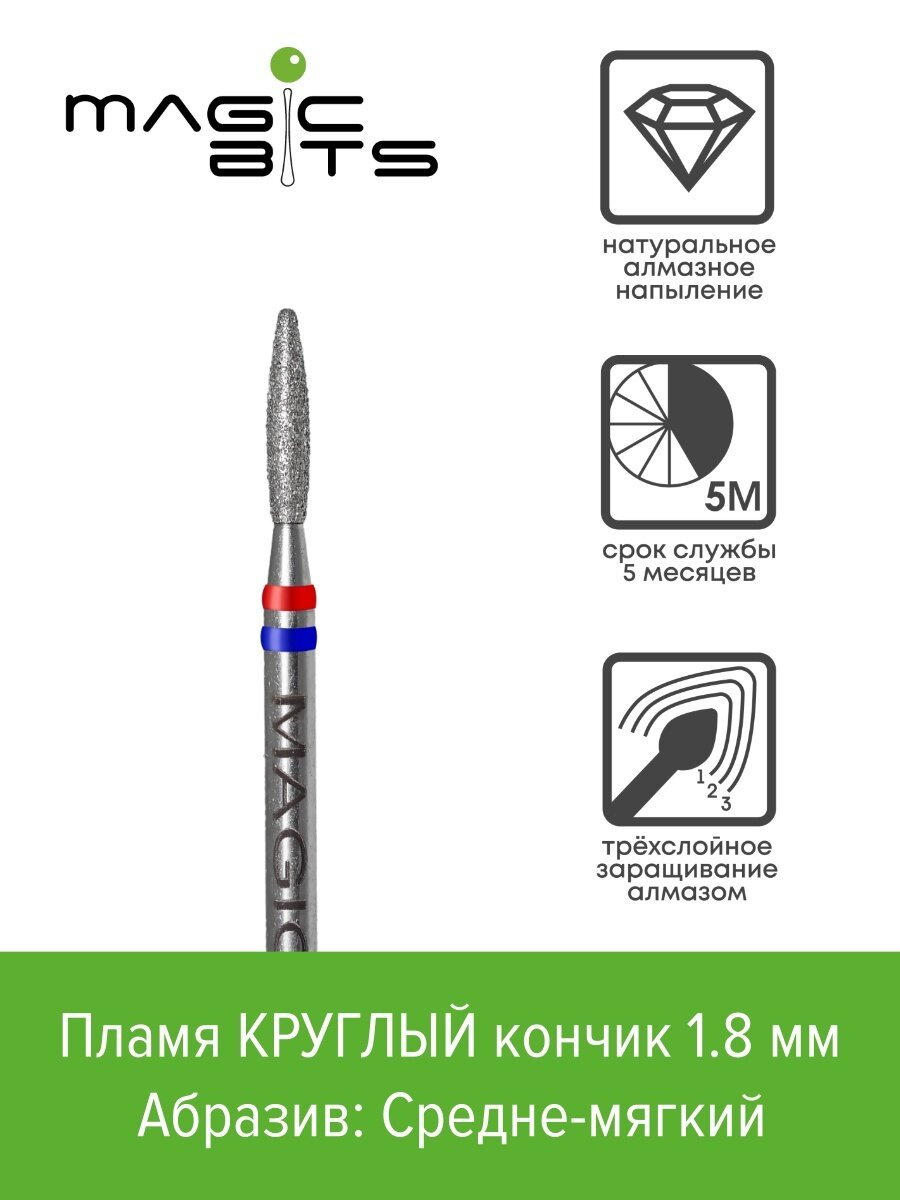 Magic Bits, алмазная фреза пламя кругл. кончик (1.8 мм, средне-мягкая) интересное: