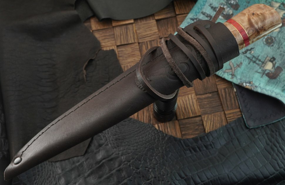 Нож Стальные Бивни Малый Якутский, сталь Х12МФ, рукоять карельская береза, красная вставка интересное: